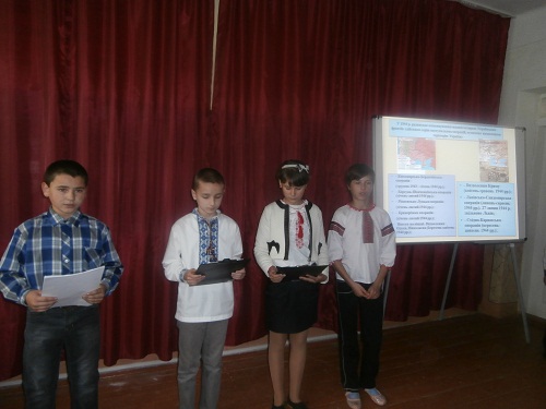 Вклонися, моя Україно, цим людям величним і скромним, що в назвах фронтів титанічних пронесли наймення твоє. Ти словом достойним розкажеш своїм поколінням потомним, чому їм довічну пошану твій вдячний народ оддає! 26 жовтня відзначаємо 71-річницю визволення Закарпаття від німецько-фашистських загарбників. Пам'ять про тих, хто не шкодував себе, рятував рідну землю і приніс перемогу, живе і нині. З нагоди цього в нашій школі пройшло ряд заходів: уроки Мужності, бесіди, оформлення тематичної виставки. Учні 7 класу під керівництвом педагога-організатора Варги О. П. підготували загальношкільний захід «А пам'ять священна…», під час якого згадали нелегкий шлях, який вів до визволення, наших земляків, які наближали це визволення. Також і учні, і вчителі вшанували пам’ять полеглих солдат у Другій Світовій війні, та загиблих героїв АТО хвилиною мовчання.