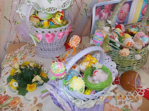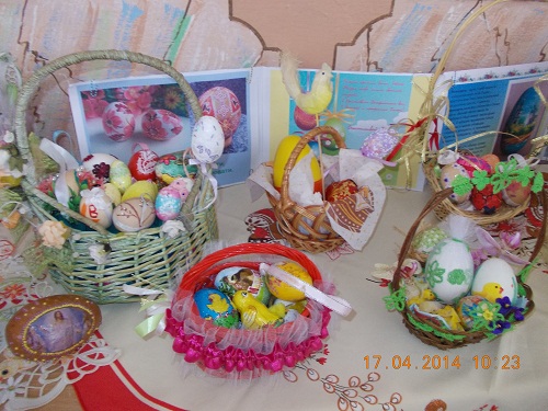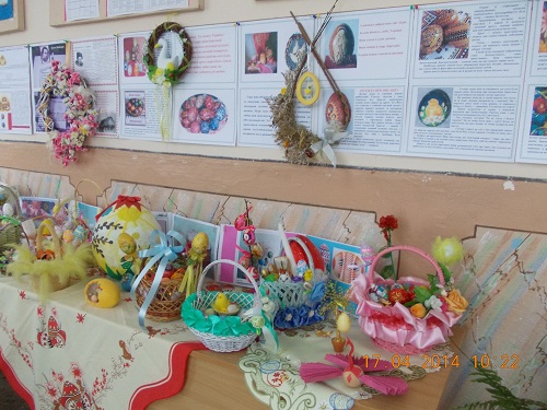 А писанка добром весь світ зігріє,За нею вічність, небо, Україна.Вона плека в душі дитини,Вона любові й миру берегиня,І серця нашого поезія й святиня.Традиційно серед найулюбленіших, найдревніших, найбільш відомих та вишуканих символів Великодня залишаються писанки. Недарма мудрі люди кажуть: "У світі доти існуватиме любов, доки люди писатимуть писанки". Кожна писанка - це ніби маленький світ. Це чудово продемонстрували учні нашої школи під час конкурсу-виставки великодніх композицій «Котилася писаночка…». Серед експонатів можна було побачити мальованки й дряпанки, витинанки, оригамі, власноруч вишиті рушники та серветки, а також великодні кошики та композиції. Усі вироби достойні уваги, адже виготовлялися з любов`ю та душею.