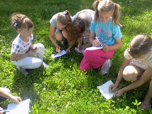 моя жива. Сьогоднішній день відпочинку в ДЗВ «Веселка» вкотре довів, який величезний і різноманітний світ дитячої фантазії. Після ранкової зарядки та сніданку було оголошено конкурс малюнків «Світ мого дитинства», який проводився на природі. Школярі працювали, створюючи справжні казкові сюжети. Малюнки у них вийшли виразними та неповторними: усміхнене сонце, чудові квіти, різнобарвна веселка, рідний дім, батьки, школа, друзі тощо. Кожен малюнок виявився незрівнянним та особливим. | |