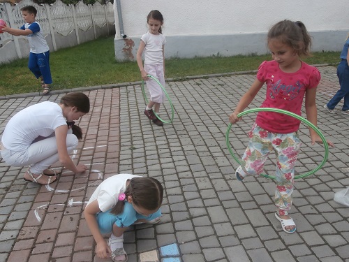 Також охоче всі діти розгадували загадки, кросворди, що сприяло глибшому засвоєнню ними багатьох слів. Смачно пообідавши, діти всіх загонів дружно долучилися до малювання на асфальті, ігор з м’ячем,обручами, скакалками. А наприкінці дня найактивніші загони - "Ромашка", "Смайлик - дружба" - були нагороджені дипломами. Четвертий день у таборі «Веселка» пройшов емоційно, насичено та активно.