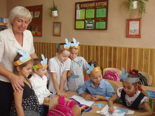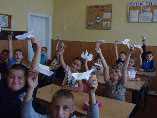 Класними керівниками 1-4 класів був проведений майстер-клас з виготовлення фігурок голубів. Під умілим керівництвом учителів-початківців діти власноруч виготовили паперовий символ миру у техніці паперопластика, оригамі, малювали його, розфарбовували, писали свої щирі дитячі мрії про збереження миру на землі, в Україні, щоб радіти сонцю, квітам, зростати здоровими і щасливими.