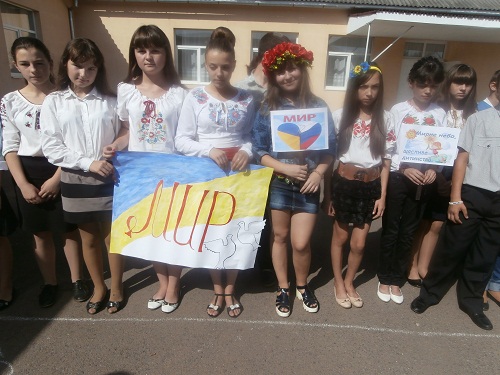 Під гаслом «Голубко біла, ти лети у світ, Хай буде мир у небі голубому!..» пройшов флешмоб серед школярів 5-9 класів, які озвучили свої побажання миру та спокою в державі.