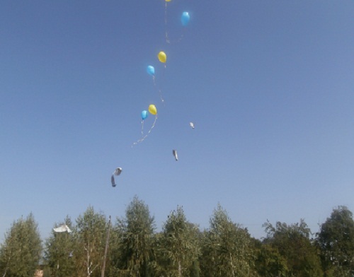 Гарні, усміхнені, одягнуті у вишиванки, діти з надією випустили у небо жовто-блакитні кульки та білих голубів – символ миру, злагоди та вірності рідній землі.