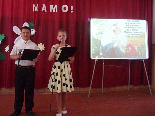 Розпочався виступ з щирої молитви за маму, проханням у Бога здоров’я та щастя для неї. У виконані учнів школи прозвучали вірші, пісні, які приготували вони для матерів. У всіх них, а також в сценічних номерах діти виливали свою любов та повагу до матусь. Їхні обличчя сяяли усмішками, а уста промовляли найтепліші, найрадісніші побажання своїм рідним. Адже всьому початок – мати. Вона – берегиня роду людського.