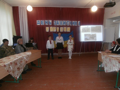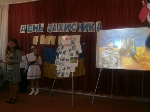 У ці непрості для України часи, напевно, кожен з нас, як ніколи, повинен відчути себе причетним до долі рідного краю, відчути себе його частинкою. Адже твориться історія, учасниками якої є ми самі. Тому ми безмежно вдячні тим воїнам, які щоденно ризикують своїм життям, боронять незалежність, територіальну цілісність нашої держави. І ми пишаємось тим, що серед них є наші земляки, зокрема, випускники Клячанівської школи, які стали почесними гостями та учасниками відкритого загальношкільного заходу до Дня захисника України: Добош Іван, Лавкай Борис, Томашовський Мирослав. Саме для них лунали зворушливі слова подяки, вірші патріотичного змісту, звучали пісні про Батьківщину та її мужніх синів. Хвилиною мовчання всі присутні вшанували пам’ять загиблих.