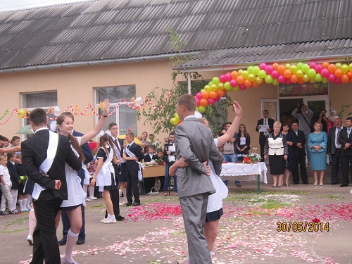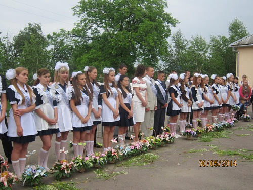 На урочисту лінійку зібралися сьогодні учні нашої школи. З добрими і теплими словами звернулися до випускників гості свята: представник відділу освіти Мукачівської РДА Тулюк О. І., начальник управління соціального захисту населення Клюса М. М., голова сільської ради Мишкулинець М. М. та депутат Мукачівської районної ради Дерев’яник В. П.Вони побажали одинадцятикласникакам упевнено крокувати у доросле та щасливе життя, вступити до обраних навчальних закладів, зробити свій життєвий та професійний вибір і завжди йти дорогою добра.