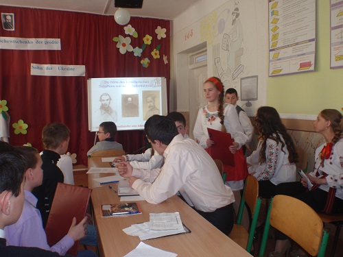 Є Маланюк Поезія талановитого Кобзаря викликає в людях почуття гордості і захоплення красою , своєю силою і народною мудрістю. В рамках відзначення 200-річчя від дня народження Т.Г.Шевченка 13 березня в школі пройшли літературні читання, в яких взяли участь учні 5-11 класів. Діти з великим задоволенням декламували свої улюблені вірші, вразивши всіх своїми емоційними і талановитими здібностями. Вони ніби заново відкривали такі вже знайомі рядки, переосмислюючи прочитане, шукаючи відповіді на сучасні запитання. Присутні слухачі насолоджувались поезією талановитого митця, відзначивши найкращих читців. ![]() ![]() ![]() Особливим сюрпризом для учнів та педагогів школи стало свято-вікторина на німецькій мові «Тарас Шевченко – великий син українського народу», яке підготувала та провела Сікора Н. В. Об’єднавшись у дві команди («Допитливі літератори», «Старанні художники»), учні 8 класу показали неабиякі здібності, представляючи Кобзаря як поета та художника на німецькій мові. ![]() Несподівано чудово прозвучали деякі з відомих творів Т. Шевченка німецькою мовою, прочитані вихованцями. Зворушливо, майстерно була також підготовлена інсценізація про маленького Тарасика та Оксанку. ![]() Підбиваючи підсумки, члени журі відзначили високий рівень підготовки свята-вікторини, його оригінальність, емоційність. В результаті перше місце вибороли учасники команди «Старанні художники», які були нагороджені спеціальними медалями. ![]() ![]() | |