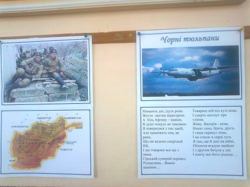 13 лютого в нашій школі пройшли заходи з нагоди 26-ї річниці виведення військ з Афганістану та вшанування учасників бойових дій на території інших держав, що відзначатиметься 15 лютого. У кожному класі відбулися бесіди, години спілкування, Уроки мужності , присвячені мужності, патріотизму всіх тих, хто брав участь у цій війні. Учні 10-11 класів взяли участь у засіданні круглого столу «Час подвигів не пройшов», а школярі 5-9 класів підготували виставку стіннівок на тему «Відлуння Афганського болю». Також діти мали змогу переглянути презентацію «Час і досі не загоїв рану – цей одвічний біль Афганістану». Хвилиною мовчання вшанували пам’ять загиблих воїнів-інтернаціоналістів.